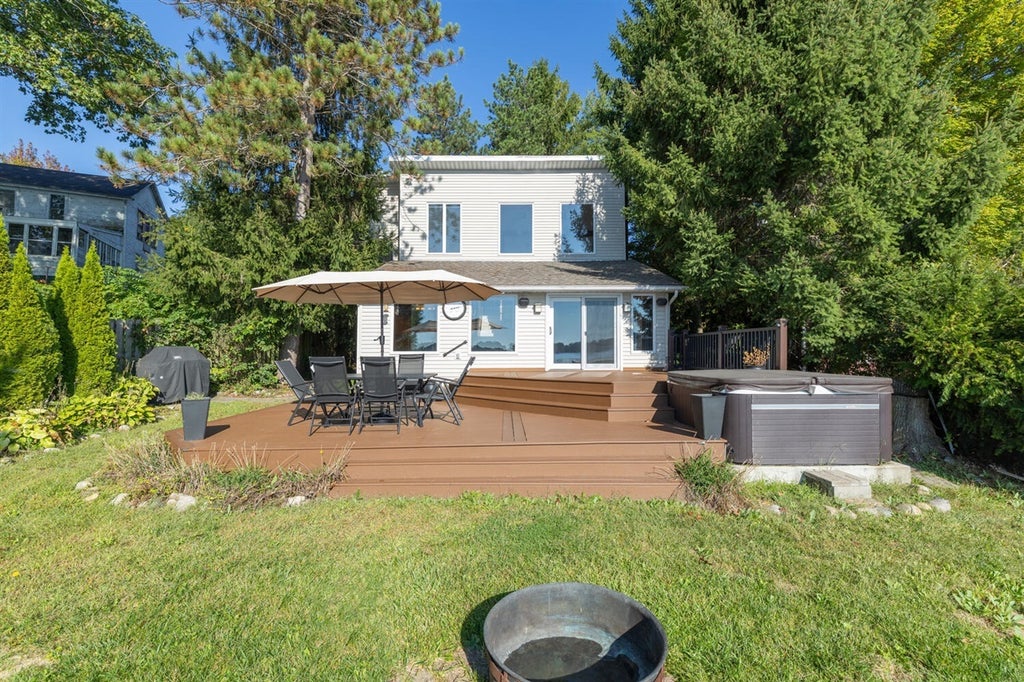 3 BD 2 BA, 1,904-sq-ft year round home with 65 feet of water frontage on Eagle Lake. New carpet and paint throughout! Breathtaking views from the lakeside TREX deck and hot tub. Main level: living area w/ vaulted ceiling, wood floors, floor to ceiling stone fireplace; dining and sitting area with views of the lake; kitchen w/ stainless appliances and garden windows; primary BD; BA. Upstairs: loft area with lake views, BD; BA; BD. 2-car detached garage w/ storage access below. Eagle Lake is a 399 acre Spring Fed, All Sports Lake located 2 hours from Chicago and 25 mins to Notre Dame.