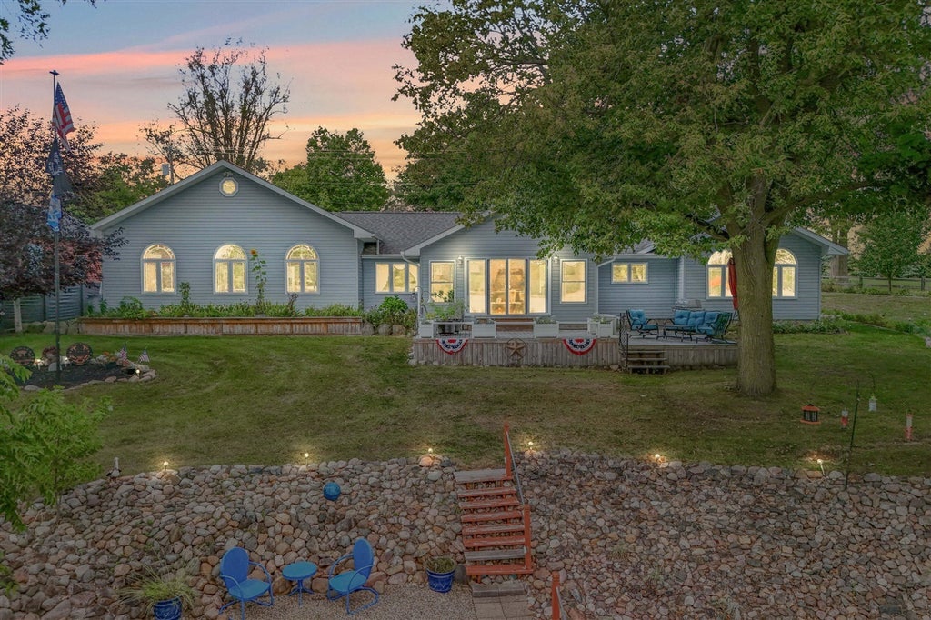 *UNION LAKE 180 FT. OF WATERFRONT* This home was made for entertaining! Multiple decks and firepit area overlooking the beautiful lake, large covered porch, and 50 ft. aluminum dock to park your water toys. Offering a spacious open concept living, dining, and kitchen with stunning views! Kitchen complete with stainless steel appliances, granite countertops with center island with gas range, stainless steel hood, large farmhouse sink, and soft close hickory cabinets. Oversized 30x40 attached heated garage, additional 22x30 detached garage, storage sheds, and greenhouse! Don't miss out on this one. Call listing agent Karmen Case directly today at www.case_realty.com. This company makes no warranty or representations about the contents of this data including room sizes & sq. footage.