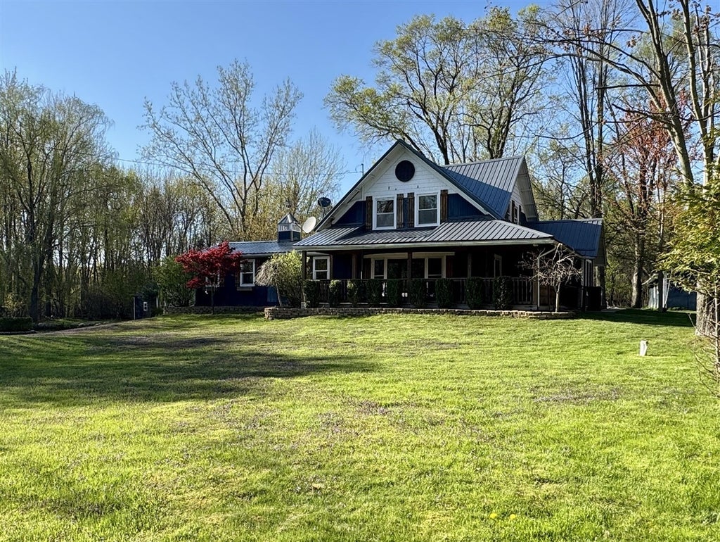 Price adjusted! Get your offer in today! Privacy abounds, yet only a half mile from Lake Michigan! This 4 bedroom, 3 bath farmhouse features updated living and entertaining areas complete with an open concept kitchen with large island, stone woodturning fireplace, and large primary bedroom on the main floor. Three more bedrooms and a bathroom are located upstair. The house is a dream for entertaining with the large wrap around porch, huge deck in the rear with new hot tub and a stocked pond full of bass and bluegill. The large 3 car garage has room for all your toys and has an area in the rear ready for finishing for an additional living space and bathroom. This property is an excellent option for a seasonal cottage, year around home or a vacation rental! See it today!