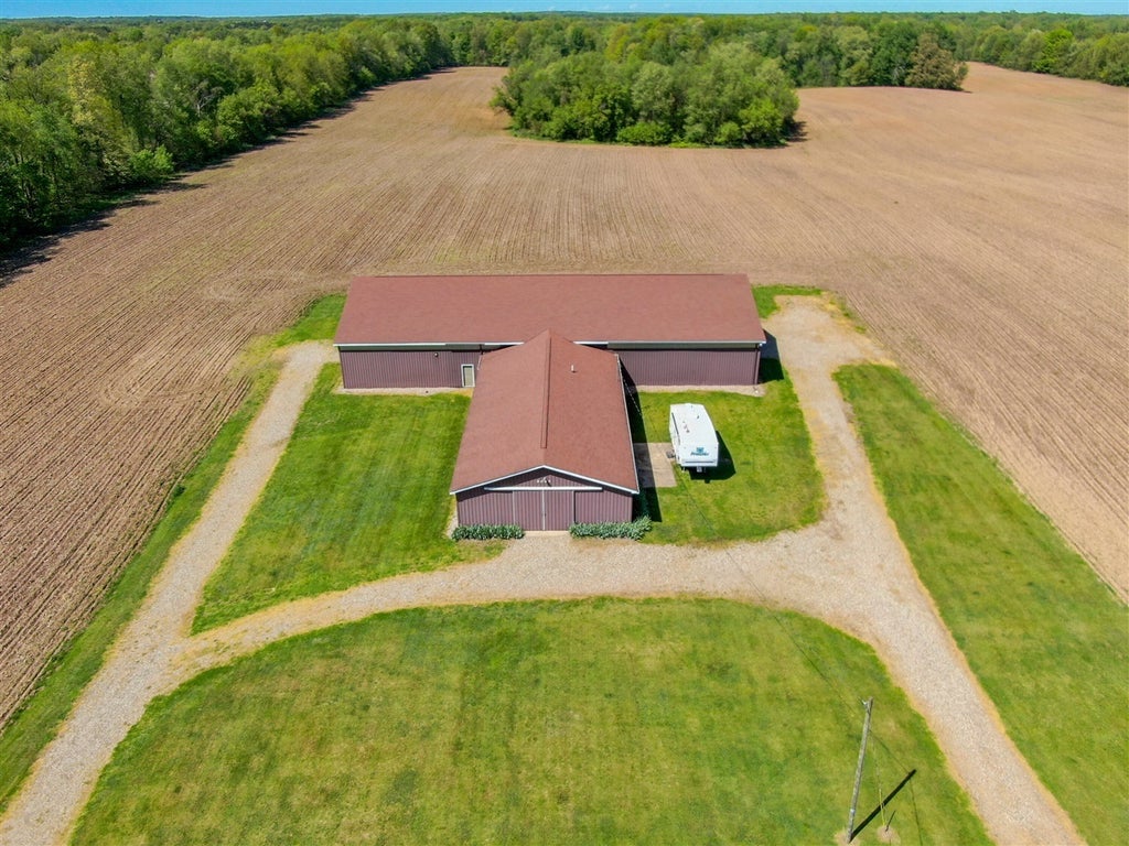 Schoolcraft schools, Prairie Ronde Township,70+/- acres that are high and rolling. Acreage includes 55 acres of tillable crop ground with 15 acres of mature trees and a small seasonal pond that the family referred to as the soup bowl. Grounds and circle drive are well maintained around the pole barn and the lawn is mowed to the roadside. Steel pole barn is T shaped and was built in the late 80s or early 90s. The larger section is 120 x 60 and the smaller section is 36 x73. There is 9828 sq ft of usable space that includes concrete floors with 2 small areas of gravel floor, propane overhead furnace, electric,well septic, waterheater, plumbing,bathroom,small kitchen/office space and tool shop. There are multiple 16 ft sliding doors and steel service doorsAgent Only Remarks: Special Asses