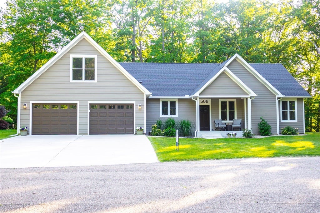 Newly available in the City of New Buffalo! An abundance of natural light fills this custom-built home on a quiet cul-de-sac.All of the features: quartz countertops, pendant lighting, stainless appliances, farm sink, snack counter, open concept layout; 4-5 bedrooms, 3 full bathrooms, main-level laundry, EV Charger in two-car attached garage; a beautiful screened in porch and more.Primary bedroom features an amazing bathroom with wet room that has to be seen to be believed and oversized walk-in closet.Spacious bonus room (with full bath) above garage can be used as a 5th bedroom or flex space.Beautiful pond out back door offers serene views and visits from local wildlife.Vacant lot next door is included.No STR license.Listing agent related to Seller