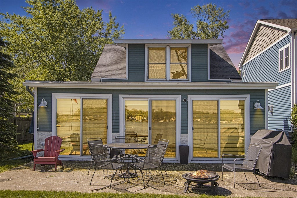 Enjoy 50 feet of prime frontage on the southern coastline of West Lake - a 330 acre all sports lake in Portage. This is a completely updated 3 bedroom, 2 full bath home--perfect as a year-round residence or a premium cottage retreat. Off the two-car attached garage you will find a large entryway with mudroom/laundry area with stacked washer and dryer plus storage space. The main level primary suite offers a newly renovated, spacious bathroom. Step into a bright, open-concept living space with a kitchen boasting an 8-foot island, granite countertops, and a premium LG appliance package including a 5-burner gas range and beverage door refrigerator.