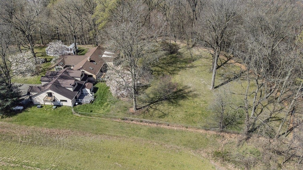 Welcome to the Harbor Country Lodge! HUGE VACATION RENTAL POTENTIAL!! .This rare property offers 14 acres bordered by the Galien River and is made up of two homes in one, connected by a lock-off hallway and encompassing 5br/7.5ba and 2 full kitchens. You'll have plenty of room to gather family and friends, whether tucked around the huge stone fireplace, around the table in the generous dining area, or giving a hand in one of the spacious kitchens. Vaulted wood ceilings and large windows create a light and airy vibe throughout. Finished lower level is a great bunk room. Outdoors enjoy a flagstone courtyard and large decks overlooking the grounds and a built-in pool with huge deck. Live in one side and rent the other or invest in a great vacation rental close to everything in Harbor Country