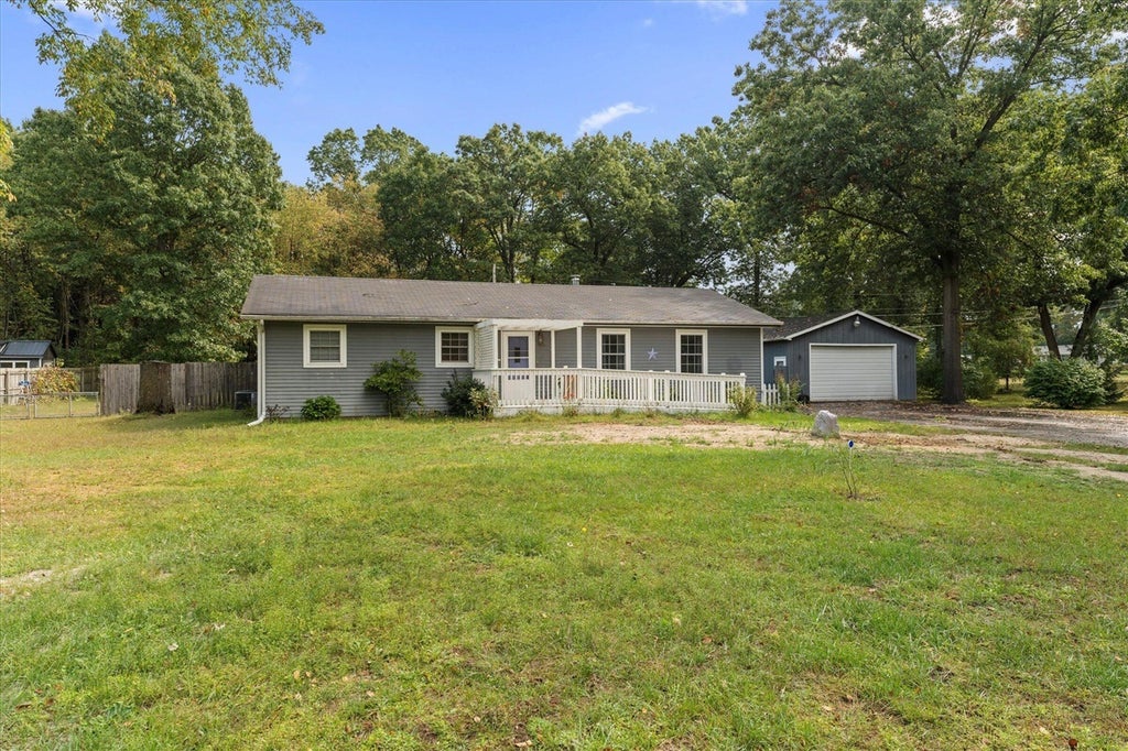 This awesome Brandywine Home offers a spacious living room, a comfortable eat-in kitchen perfect for gatherings, and a convenient breezeway with access to the crawl space for easy storage and maintenance. Set on a peaceful lot with a stunning natural landscape lovingly cultivated over time, this property features a vibrant mix of trees and perennials, including lilacs, hydrangeas, Rose of Sharon, irises, plus edibles like blueberries, raspberries, mature concord grapes and even morel mushrooms. The private backyard is a dream for garden enthusiasts, and the spacious detached pole barn offers ideal storage or hobby space. Conveniently located near top-rated schools, shopping, dining, and local attractions, this property blends serene living with everyday convenience. Lots of potential!! NEW WELL, UPDATED ELECTRICAL!
