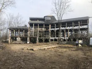 Awesome location. Great lot. Building needs to be finished or torn down.