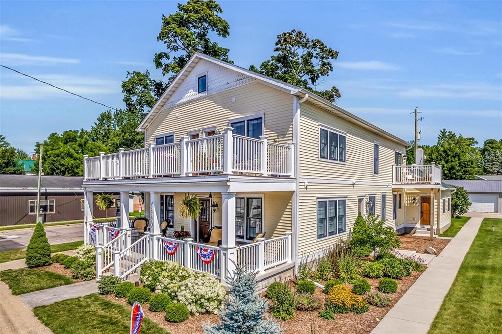 Beautifully Renovated Historic 5-Plex in the Heart of Onekama. This is a rare opportunity to own a completely rebuilt, turn-of-the-century landmark right in the heart of downtown Onekama. The historic Onekama Hotel was rebuilt from the foundation in 2023 with all-new plumbing, electrical, HVAC, insulation, drywall, windows, roof, porches, and decks. Each unit has its own heating and cooling, on-demand hot water, and the building features a water softening system. All five units are fully furnished with high-quality pieces from West Elm and Pottery Barn, and the property is being sold fully furnished. Suite #1 is a spacious two-bedroom, two-bathroom unit that would be ideal for an on-site owner or private getaway. The remaining four units are one-bedroom, one-bathroom