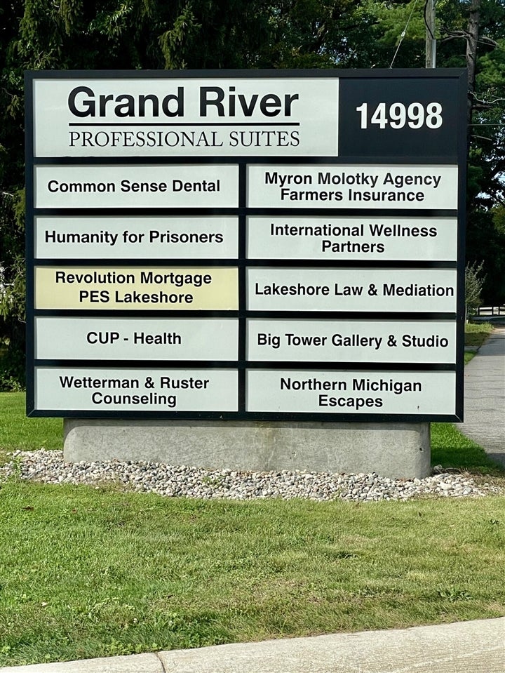 Two Units Available for Lease, located in a prime spot on M104, offers a high-visibility opportunity for businesses seeking convenience and accessibility. With easy access to major highways, including I-96, US-231, and US-31, this high-traffic area ensures clients and customers can reach you with ease. Main Floor & Lower Level can be leased together or separately, ideal for a variety of professional uses. Both units have large windows allowing natural light to flood the space, with private baths and kitchenette space in lower unit. The Suites are part of the Grand River Professional Suites, a commercial office condominium where association fees and taxes are covered by the landlord. Ample parking available. Leasee responsible for any build out.
