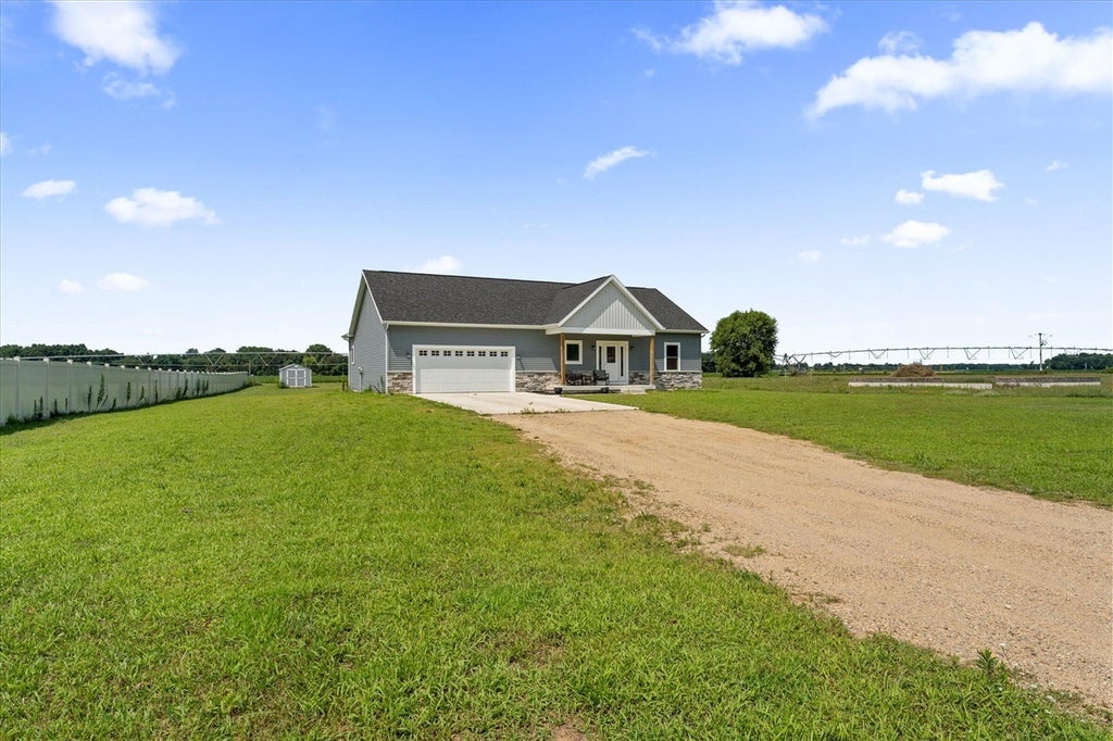 OPEN HOUSE Wednesday Aug 13, 5-7:00 pm Here it is!! A Newer RANCH built in 2023 located close to everything in charming Falcon Cove Subdivision. The moment you step inside you will be captivated by the openness, the airy feel of white cabinets, the cathedral ceiling and the sprawling center island that welcomes everyone to come in and stay a while! The split floor plan offers the expansive primary bedroom with lovely modern tiled walk in shower. The living room is stunning with the large sliders that welcome great views of the very spacious yard! The unfinished lower level is ready for your final touch and has 2 egress windows on each end to offer absolute living space! New RANCH'S are hard to find, this one is quality and very thought out.