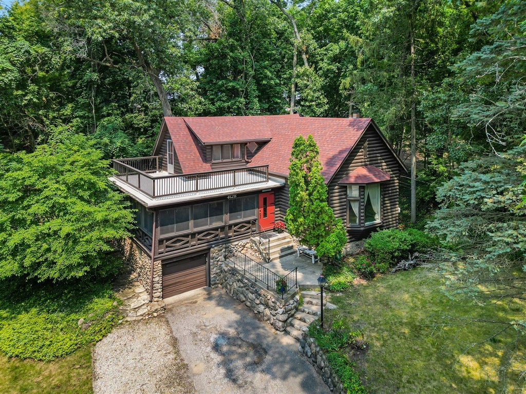 MOTIVATED SELLERS ! Just 300 Steps to Lake Michigan!Nestled in the heart of Michiana, this charming log cabin offers the perfect blend of rustic character and lakeside living. Featuring 3 bedrooms and 2 baths, the home boasts vaulted ceilings, a striking fieldstone fireplace, and a spacious three-season porch--ideal for relaxing after a day at the beach.Rare opportunity to own a sought-after original Michiana log cabin, now featuring a newly finished balcony perched in the treetops--perfect for morning coffee or evening stargazing.Additional highlights include a full basement and a one-car garage, providing ample storage and convenience. Recent updates include a 3-year-old roof, newer hot water tank, and a remodeled main bath. Upstairs you'll find newer windows, fresh drywall, and generously sized closets. While the home could use a touch of TLC, it presents an incredible opportunity to craft your dream retreat. Enjoy one of the largest beaches at Stop 41.