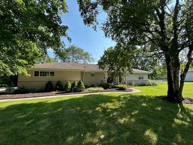 Over 3300 sqft, sprawling ranch on 1.29 acres, with finished walkout, 4 full baths, 5 bedrooms, 2 fireplaces, 2 Kitchens, 4 car garage, 25 x25 attached heated garage with gas furnace, 100 amps electrical box, 50 amp level 2 charging plug, ring alarm, 25 x 25 2nd detached garage with electric, shed, whole house generator in 2019, hardwood floors, new carpet in 2025, well in 2024, water softener in 2022, all appliances stay, Upstairs kitchen remodeled, basement kitchen updated. Your home sits approx. 100 feet back off the road. Come see your next home today!