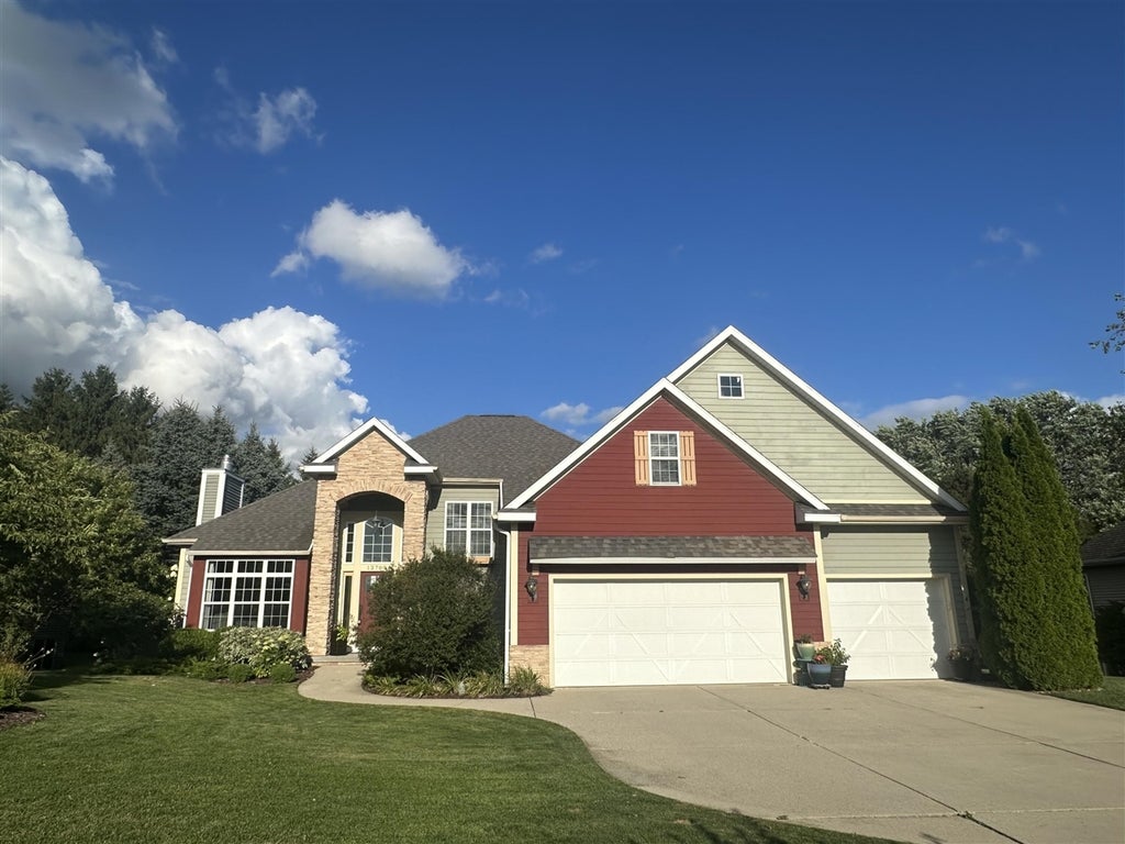 This stunning home in the prestigious Lakeside Preserve offers elegance and comfort at every turn. A dramatic two-story foyer opens to a spacious great room with a gas fireplace and oversized sliding doors to a private deck. The custom kitchen features stainless steel appliances, granite counters, and a quartz-topped island. Wood floors flow throughout the main level, including the luxurious primary suite with cathedral ceilings, skylights, and an updated ensuite.Upstairs offers two bedrooms, a full bath, and a large bonus room with a fireplace and dry bar, perfect as a third bedroom or entertaining space. The finished lower level adds a family room, bedroom, full bath, and versatile home gym or office.Enjoy neighborhood amenities like lake access, tennis, basketball, sand volleyball, and a playground. Conveniently located near Eastwood Towne Center, MSU, and the State Capitol with easy freeway access. Don't miss this exceptional home! Seller is a licensed agent.