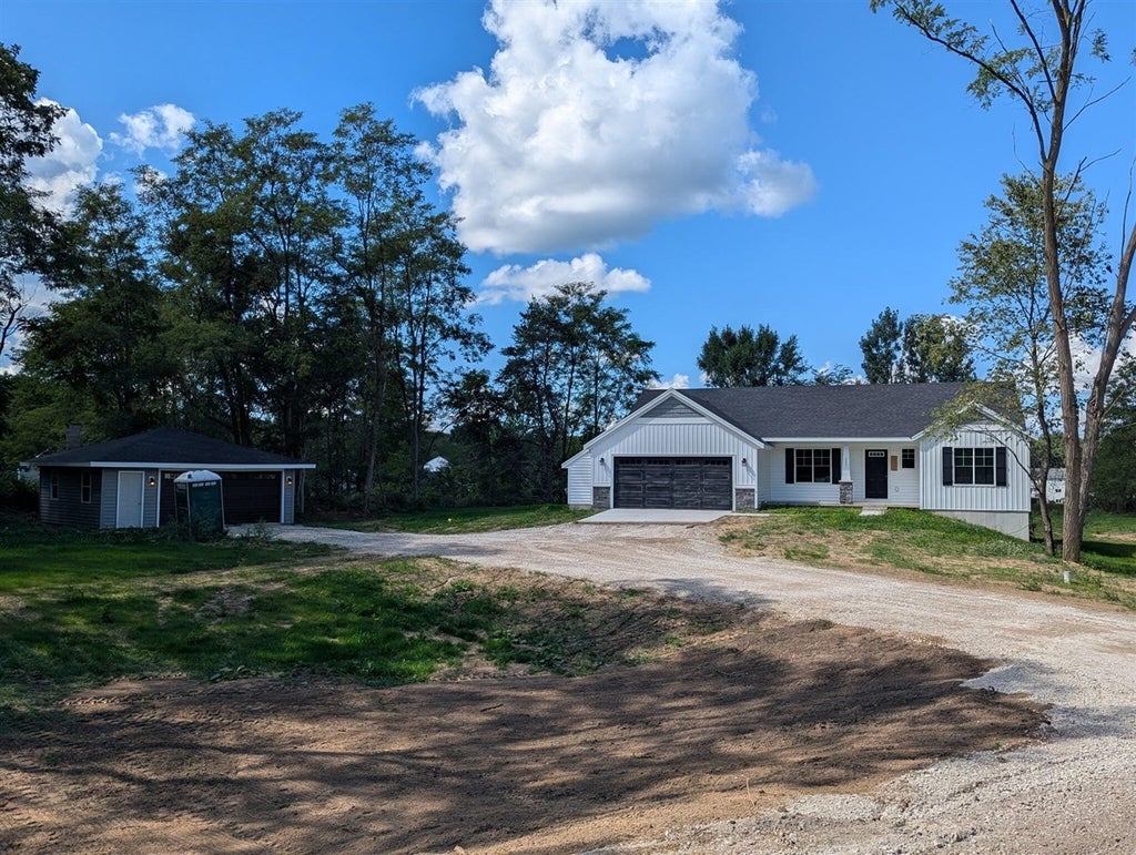 Absolutely remarkable 2-stall ranch home in Cedar Springs school district! The Bayberry ranch home has a full kitchen appliance package; dishwasher, microwave, range, and refrigerator - all stainless steel! Three bedrooms on the main floor including a primary suite with a walk-in closet, another full bath, dining room with arches and main floor laundry with a mud room. In the lower level, there's a finished lower family room with fireplace, and plenty of storage space and an opportunity to add a 4th bedroom and 3rd bathroom. The accessory building was existing on site. It has new siding, new windows, new garage door and a new roof. There is no warranty given or implied for the accessory building. This provides a lot of extra storage space! Call for your showing today!
