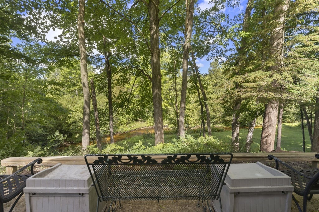 Wake up to the sound of the Little Betsie River and sip morning coffee on the patio while hardwoods and pines wrap you in pure Northern Michigan tranquility. This cozy 1-bed, 1-bath cottage blends solid block construction with a classic knotty pine interior, creating a timeless Up North retreat. Inside, an open floor plan and a wall of windows in the family room pull the outdoors in, filling the space with natural light and river views. Outside, a grassy lawn with a fire pit sits right at the river's edge--perfect for gathering under the stars while steelhead and salmon make their fall run and bald eagles circle above. Practical features include a one-car garage with a heated attached office or craft room. The home sits on about an acre overlooking the river, with additional acreage across the water that's accessible from Bentley Road.