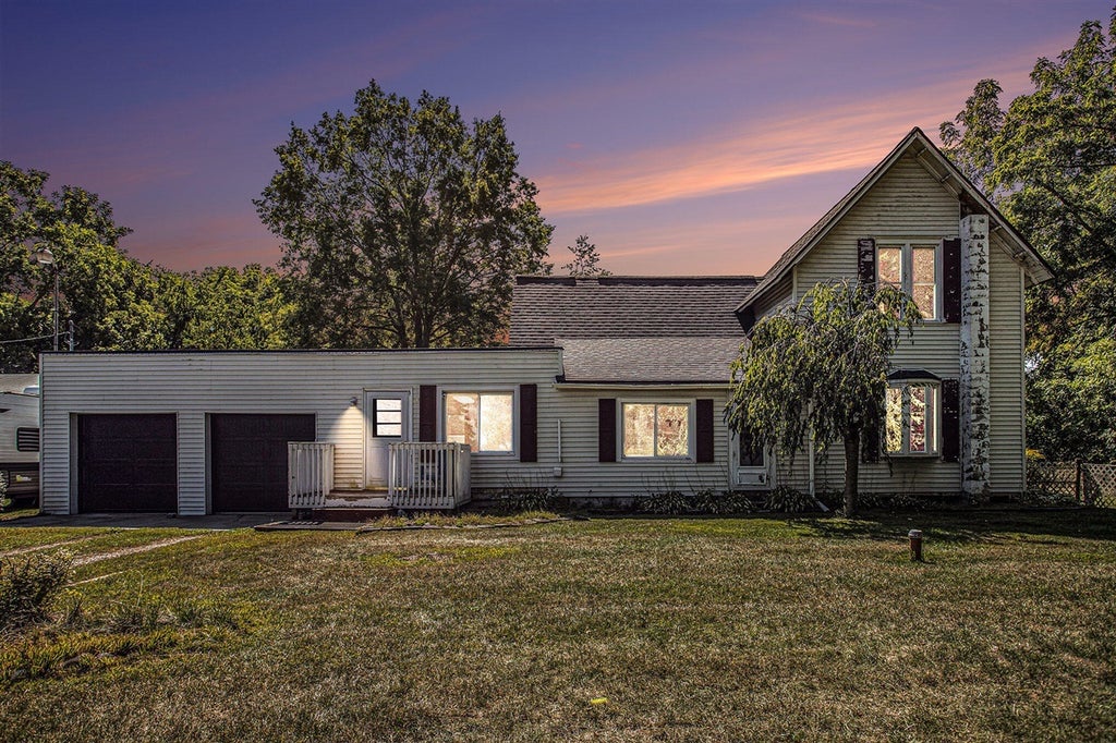 Country charm with room to roam. Located in Vicksburg Schools! This 2-story home features a spacious kitchen with island and appliances included, a bright living room with bay window, and a main-floor primary suite with vaulted ceilings and dual closets. Upstairs offers two large bedrooms and a full bath, while the main level also provides the possibility of a fourth bedroom.Enjoy outdoor living with a 15x16 deck overlooking the pond, flower gardens, grapes, and pear tree. Property includes a 32x48 pole barn. Recent updates include a new roof, LVP flooring, and new high-efficiency HVAC system. Just 1.5 miles NE of Vicksburg!