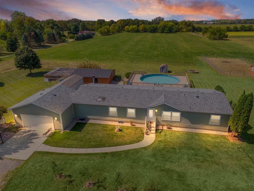 Here is your country ranch home, perfectly situated on 9.8 acres in the serene town of Edwardsburg, Michigan. This property, less than two hours from Chicago, offers an ideal escape for a full-time residence or a peaceful part-time retreat. This spacious 4,200 square foot home features a recently renovated main level. The lower level includes two bedrooms and a full bath, providing a versatile space that can be transformed into a new recreation room or a private mother-in-law suite. Step outside to enjoy the refreshing pool, a newly built chicken coop, and a dedicated sheep stable. The expansive new deck offers breathtaking views of the changing seasons along your private tree line. This property truly provides endless possibilities for creating your own private haven. Chickens are available for purchase.