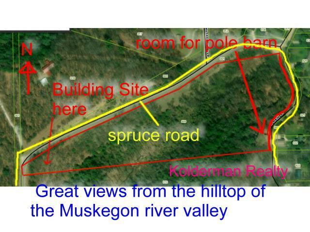 Wow this property has been perked 10.5 acres, all wooded, ready to build, convention system is a possibility, perk test at top of hill on spruce drive, hunting on your acreage and muskegon river boat access just down the road. modular homes welcome per township zoning. seller will split into 5 acre parcels call broker for details.