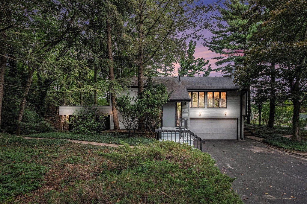 Charming 1977 split level on a peaceful 1/2 acre, one block from Lake Michigan. The living room centers around a fireplace and a dramatic wall of windows with three sliding glass doors, opening to a massive screened in porch--your everyday perch for morning coffee, alfresco dinners, and the soothing sound of waves. This home offers 3 Bed / 2.5 Bath with a 2 car attached garage. The lower-level functions as a guest friendly zone with a private bedroom, full bath, family room, and a sunroom opening to a brick patio. Meandering trails link the side and back yards, creating multiple outdoor moments beneath mature trees. Coveted Village of Michiana location close to the Village Hall, public pickleball courts, park and playground, and an easy stroll to the shore. Close to Stop 50 Pizza, Farinas Super Club, and everything Downtown New Buffalo & Harbor Country has to offer. Welcome to 90 East Ct.