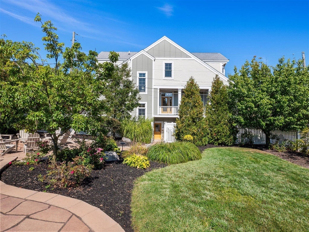 Cheers to 57 North Shore! Step through the gated fence and experience an outdoor sanctuary designed for entertaining, with shimmering pool, cascading waterfall, playful splash pad, outdoor bar with tap, built-in grill, and a firepit glowing beneath a canopy of stars. Winding stone paths, mature trees, and swaying beach grass frame this timeless coastal setting. Inside, walls of windows flood the home with light, seamlessly blending indoors and out. Two fireplaces anchor welcoming living spaces, complemented by 5 bedrooms, 4 baths, 3 spacious family/living rooms, an office, and open kitchen and dining areas perfect for gatherings. Nestled between the waves of North Beach and the vibrant South Haven Marinaa'alive with sailboats and harbor lights, this residence delivers both tranquility and energy, only steps away. The Crown Jewel: the largest property offered in Historic Monroe Park. Permitted for STR, it hosts 11 guests and boasts a rental history.