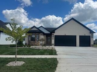 New construction, 3 bed/2-bath ranch home is ready for you. Gas fireplace in the great room provides a warm, inviting entertainment area that is open to the custom gourmet kitchen with quartz countertops, hood vent with an oversized island, provides ample seating. Master en-suite has a 3x5 walk-in shower with bench, European glass shower door, double vanities, & custom porcelain tile. 9' ceilings, LVP flooring in designated areas. 3 car garage has 2' extra depth, is insulated and Drywalled with 8' height openings. Full basement with an egress window, 3 pc plumbing for full bath, is a canvas waiting for you to finish. 30-year dimensional shingles, R15 Insulated walls, high-efficiency water heater, and more make this home energy star-rated. 1 Year Builder warranty.