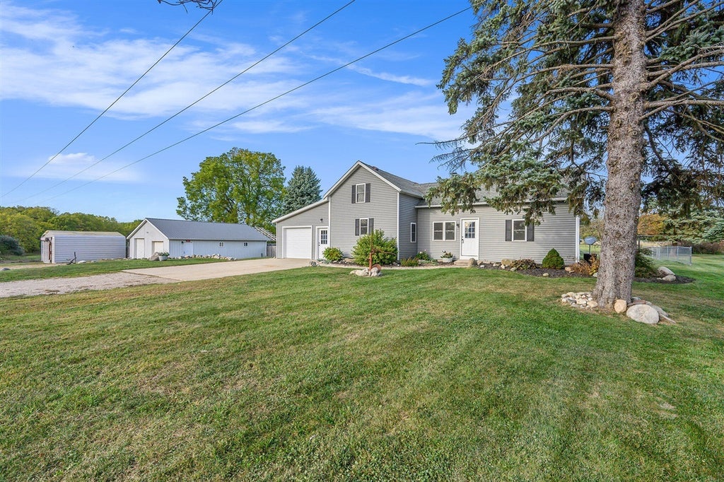 So if you are from the area you know the story on this one. a year ago this home was getting ready to go on the market when a small explosion( from a propane leak) on Labor Day did some damage. The insurance company decided to contract with VanDam and Kruisenga to have the place completely restored and corrected. So for the last year it has been stripped down and built back up. It has new electrical, new furnace, new kitchen appliances, new drywall, new windows, new siding, all new kitchen & baths. About the only things that werent replaced were the roof (was newer and not damaged) and the AC unit that still worked fine. This home has 3 bedrooms and 2 full baths along with a 4th room that could be an office or nursery as it has no closet so isnt counted as a bedroom. It has a one car garage and 32 x 40 pole barn along with a second smaller barn/large storage unit. It all comes on 2 1/2 acres of great property with a fenced in backyard and 2 basements. The old basement has one stairc