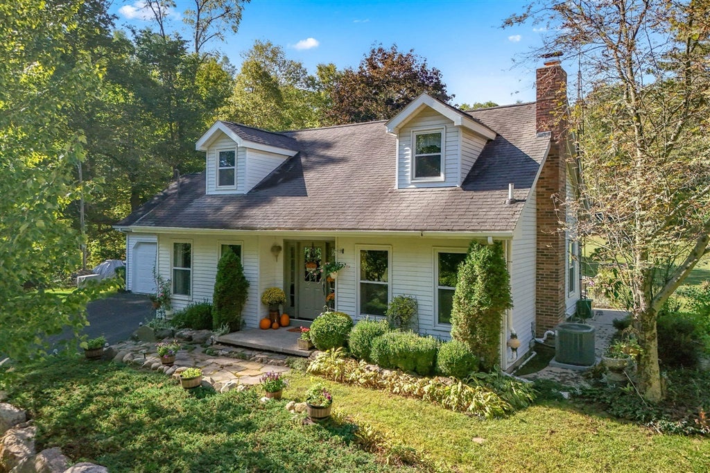Welcome to your peaceful outdoor oasis! This charming 4 bedroom, 2 bath cape-cod is tucked away in a beautiful secluded setting surrounded by nature. Enjoy modern comfort with recently updated kitchen and baths, newer windows, and a cozy wood burner in the living room to help cut heating costs. Sliding glass doors lead out to a rear patio - ideal for relaxing or entertaining. Main floor laundry. Attached 2 car detached garage. The property features blacktop driveway, new shed (great for storage), and sits on wooded acreage with abundant wildlife. The beautifully landscaped yard is filled with perennials, fruit trees, and raised garden beds - a true outdoor paradise. Broadband internet is available at the road for easy hookup. This is a must see!