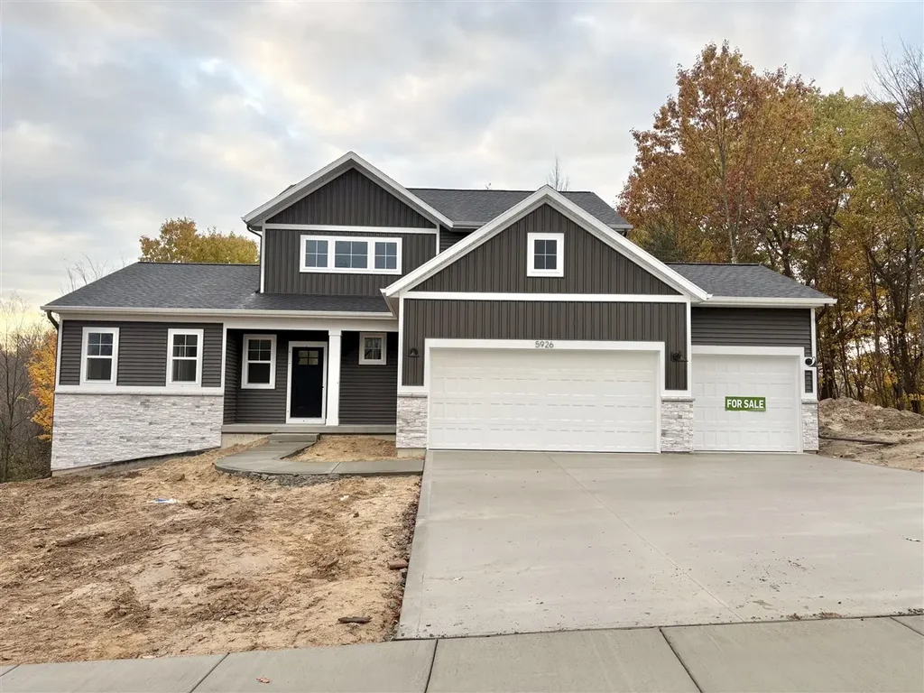 JTB Homes presents the Sycamore plan in the Valley Point neighborhood. Located in the Caledonia school district, this home boasts over 2800 finished square feet with a finished rec room in the walkout basement. The main floor features flex room off the foyer, a 2-story living room with fireplace that seamlessly transitions to the beautiful kitchen. In the kitchen, you will find a large pantry and an island making it a host's dream. The primary bedroom features a tray ceiling, dual-sink vanity and a large walk-in closet. The mudroom and laundry room round out the main floor. Upstairs you will find 3 more bedrooms and a full bath. The downstairs bathroom and bedroom are unfinished and leave plenty of room for customization by the rec room. Enjoy your deck and patio in the backyard. Current finish date is November. Landscaping is included!