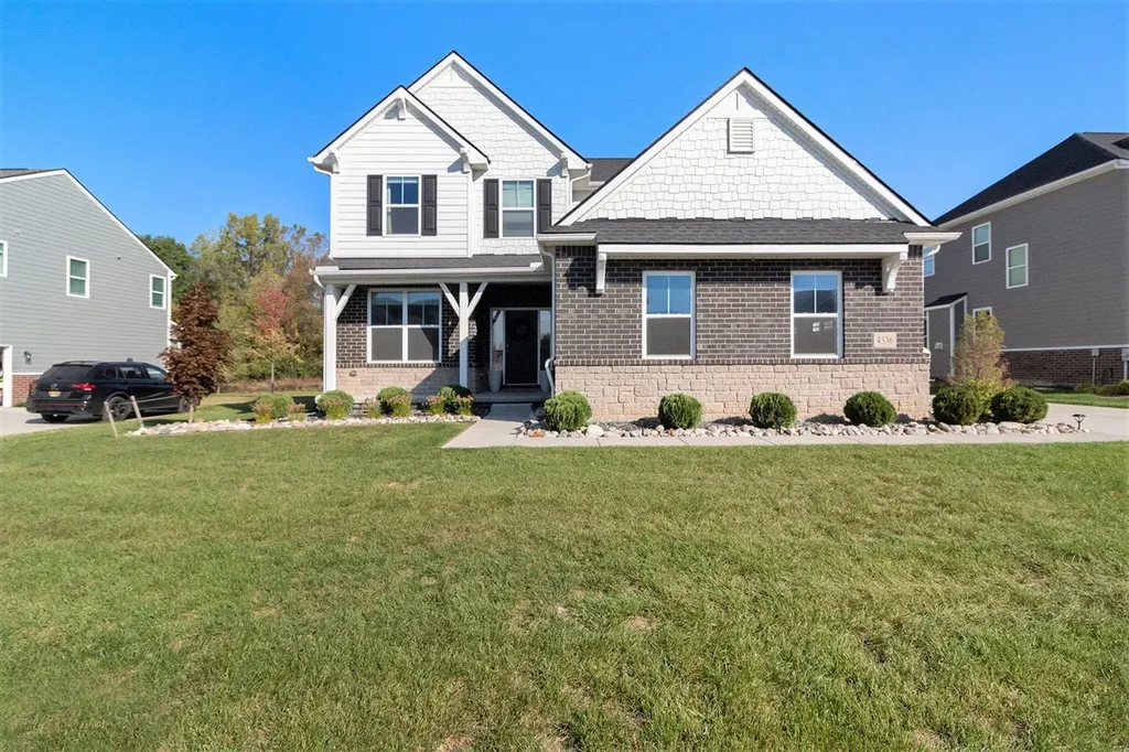 This 2021 Lombardo built Austin model in Scio View offers the highly coveted eat in kitchen with light filled dining room and 4 seater kitchen island. This home offers a tried and true floorplan consisting of main floor office space with french doors, a generous living room with stacked stone fireplace, and a functional mudroom with walk in closet. Upstairs you will find a large primary suite with double vanity, soaking tub and separate tiled standing shower, as well as a large walk in closet. 3 more bedrooms share a hall bath, bright and airy loft space, and laundry room. As an added bonus, the basement is fully finished with a bar, workout room and 3rd full bathroom! The backyard faces a protected wooded area and has a gorgeous tiered concrete patio perfect for entertaining. This house has it all!