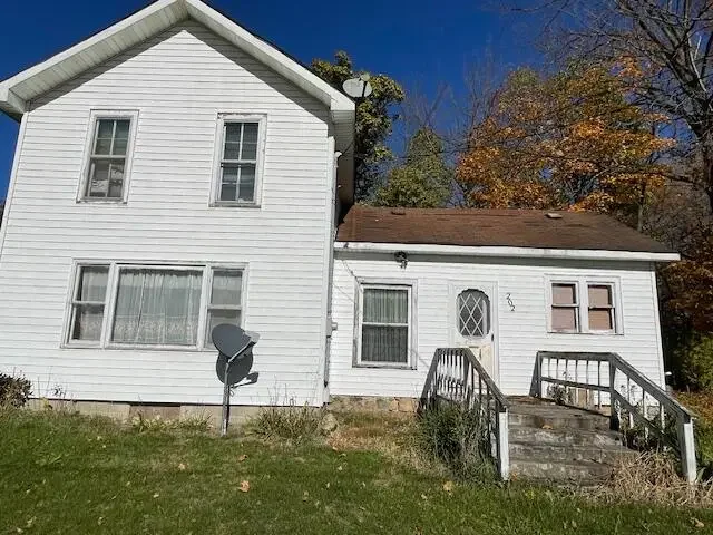 This farm house is in the village but has a country feel with large rooms and an open floor plan. SOLD 'AS IS'. Needs renovation. Buyers should consider a renovation loan and Seller will provide more information. Large trees shade the 3/4 acres with the 28 x 30 pole barn sitting to the back. Seller will look at all offers. Age is estimated.