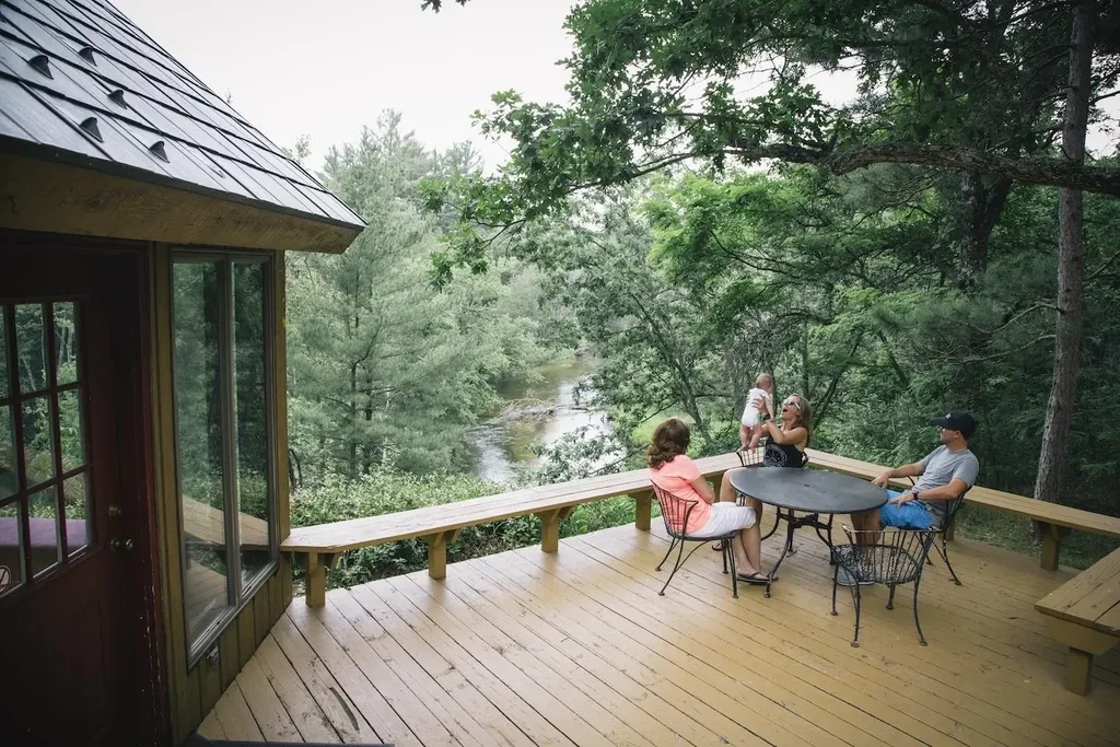 Cabin #3 has 1,148 feet of frontage and 17.95 acres on the Pere Marquette River. An easement to Mac Road, which Lake County plows in winter and maintains year-round, provides access. This cabin is high above the river with dramatic, long river views. Eagles regularly fly by at eye level! Because it was built before the Natural Rivers Act, this cabin is closer to the river than is allowed for new construction under the current 150-foot setback. This grandfathered status allows replacement or expansion by up to 50% without a zoning variance. This is unusual and highly desirable as it allows proximity to the river and views which are not possible with new construction. This is a well-maintained building with vaulted ceiling over the living/dining area. It was built in the 1980s in chalet style. There has been only one owner. This is the first time it has been listed for sale. Electric power is underground. The cabin has a well, septic system, and 1000 gallon propane tank. The main floor has a living/dining room, a kitchen with a built-in dishwasher, two bedrooms, a full bathroom, and a utility room. There is a metal wood stove. The upper floor has a full bedroom, a divided full bathroom, and an open loft area. The total living area is 1,716 square feet. The interior finish combines paneling and drywall with laminate floor coverings. The exterior siding is wood, the roof is metal. Sliding doors lead to expansive deck areas with lovely views of the Pere Marquette River. Currently, it is rented by Unsalted Vacations. They advertise, book rentals, and a crew cleans up afterward. The existing two linen changes are included. See the rental page at wwwunsaltedvacations.com. The Pere Marquette is a National Wild and Scenic River that has been recognized as one of the few trout and salmon fishing rivers of this quality remaining in the nation. It has large populations of resident brown trout and world-class fishing opportunities for steelhead and Chinook salmon.