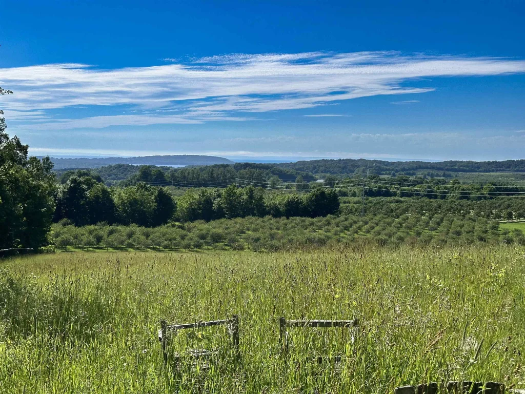 This 149.8 acre development property has unlimited potential due to its size, location, and spectacular water views. Under a mile from Grand Traverse Bay and downtown Suttons Bay, it sits less than 30 minutes from Traverse City. Sleeping Bear Dunes National Lakeshore is close enough to see, about a 20 minute drive. Two thirds of the property has views of Grand Traverse Bay while the highest elevations include vistas of Lake Leelanau, Lake Michigan, the Manitou Islands and Pyramid Point. The property includes a farmhouse with attached garage, 2 large sheds, two iconic wood barns built in the early 1900s, and a double pole barn connected to a wood garage. The home and/or out buildings can be split off. Marketing packet with zoning and conceptual development plans available upon request. Perfect location for a combination of water-view homes, high-end RV resort, winery, equestrian center, or a private estate. Property touches Suttons Bay Village on the southeast corner. Owners will entertain offers to divide the property.