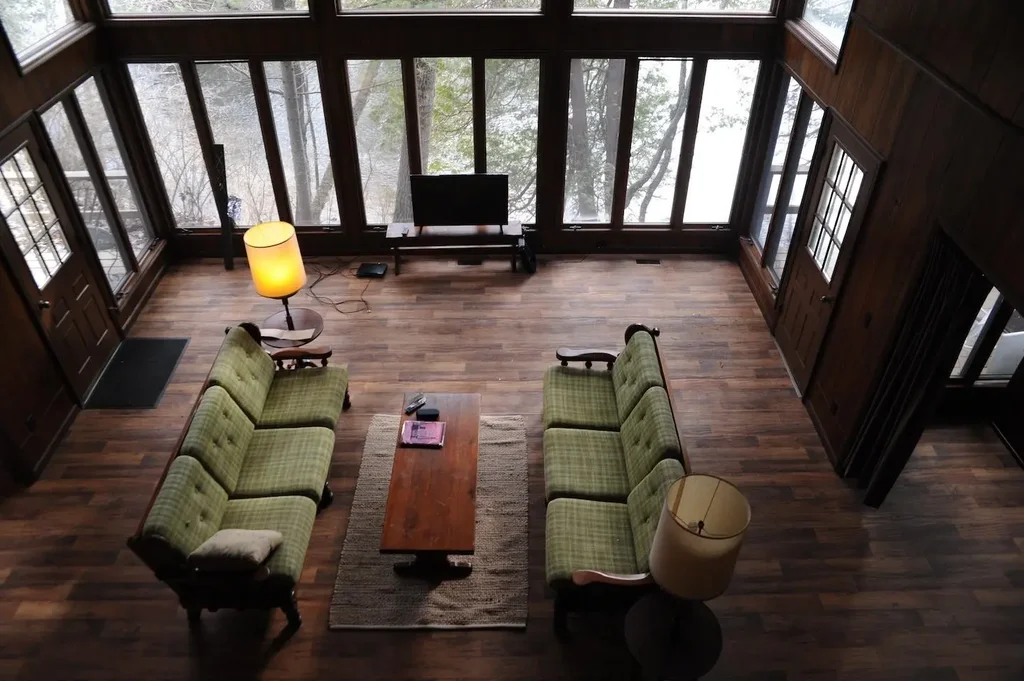 Cabin #4 is a well-maintained wood frame building built in 1980 chalet style by the current owner. It has never been listed for sale. Electric power is underground. The cabin has a well, septic system, and propane tank and direct access to South Mac Road, which is plowed in winter and maintained year-round by Lake County. It was built chalet style in 1980 prior to the Natural Rivers Act, when the setback from to the river was 40'. That is 110' closer to the river than is now allowed under Natural Rivers zoning. It is grandfathered, and may be replaced or expanded up to 50% without a zoning variance. The main floor has a two-floor high great room above the river, a kitchen and dining area with a built-in dishwasher, a den or bedroom, a full bathroom, and a utility room on the main floor. The upper floor has two full bedrooms and a full bathroom, with an open area above the living room below. The total living area is 1,872 square feet, larger than the other cabins at Cannon River Ranch. The interior finished with paneling, drywall, and laminate wood pattern floor coverings. The exterior siding is wood, and the roof is metal. Sliding doors lead to expansive deck areas offering peaceful views of the Pere Marquette River upstream and downstream. You will see eagles, deer, otter, and grouse. The Pere Marquette is a National Wild and Scenic River, a Natural River with no dam, and a Blue Ribbon Trout Stream in Michigan. It is recognized as one of the few trout and salmon fishing rivers of this quality remaining in the nation. This river was the location of the first brown trout introduction in the United States in 1884. Rainbows were planted in 1885. Today, the river also provides world-class fishing for steelhead and Chinook salmon. The river on this parcel includes some of the best fishing water on the property.