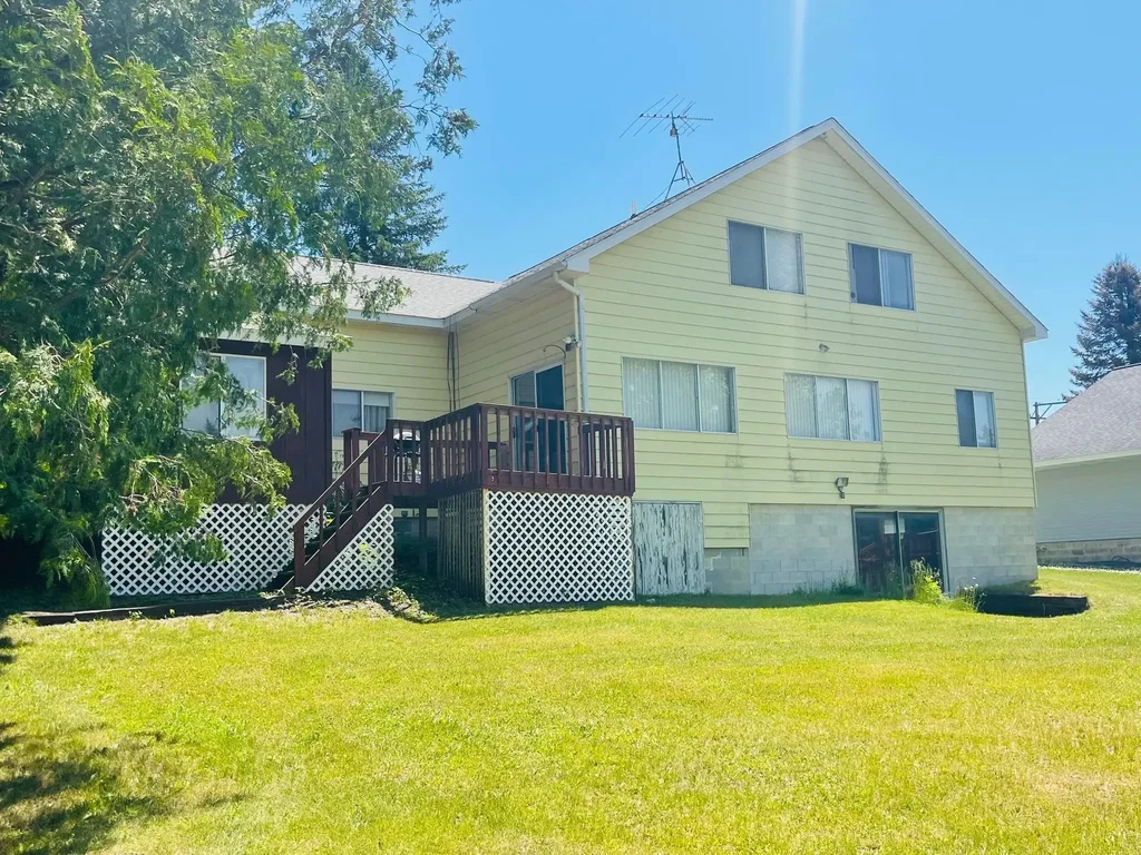 Spacious direct Intermediate River waterfront home located in charming Village of Central Lake. Great location with this deep manicured lot to perma dock giving you boatable access to the amazing Northern Chain of Lakes including spectacular Intermediate Lake which is only a couple hundred feet away under bridge. This home may be dated but is in solid condition and has so much to offer w/newer roof & heating system, three Season room w/hot tub, waterside deck, huge 700 sq foot bonus room in upper level currently used as overflow bedroom, large upper level closet set up to be additional bath, den, partial unfinished walkout basement w/laundry & 1/2 bath already installed, covered front porch, large laundry room, attached 2 car garage plus additional 40x40 pole barn with cement floor & electric. All within walking distance to sandy lakefront park and downtown Central Lake with all it has to offer.