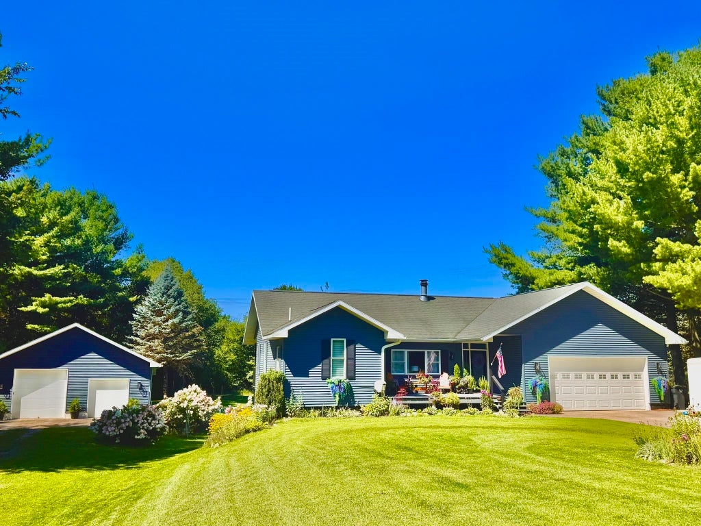 Dreaming of a place where everyone has their own space? Your search is over! Nestled in Whitewater township of Grand Traverse County, this 5 bedroom, 3 bath home has over 4,000 square feet of indoor space with 4 living room areas while the outside boasts 2.63 acres of mature trees, spring fed pond, 3 decks, cement patio, huge fenced in yard, fruit trees, perennials and a bonfire pit. Need Storage? Home includes attached 2 car garage, additional 30x40 garage with a lean-to, and a separate covered storage area. Bandwidth? Both Spectrum AND 186networks Fiber internet available. Natural gas conversion completed in 2023 with new boiler/on-demand water heating system. Kitchen has gas or electric range hook-up. Can't forget about the ice cold, central AC for those hot summer days! Three Main floor Bedrooms: All with walk-in closets and wood floors. Two more bedrooms located in the lower level with closets and full-sized windows and a full bathroom. Walkout basement includes a bar area with sink, additional rooms currently used for an entertaining room and an exercise room. Bathrooms: All showers are tiled and vanities include granite countertops. Primary bedroom suite bathroom professionally remodeled. Many other updates include; new interior and exterior lighting, fresh paint throughout, basement stairs carpeting, rain gutters, new basement flooring, fenced yard, door wall in main floor living room, new decks, new garage door openers, and much more! Home is located in the award winning Elk Rapids school district, 9 minutes to Flintfields Horse Park, 10 minutes to Grand Traverse Resort/Meijer, 2.4 miles to Skegemog Lake boat launch and 5 minutes to Sand Lakes Quiet Area. Agent owned home.