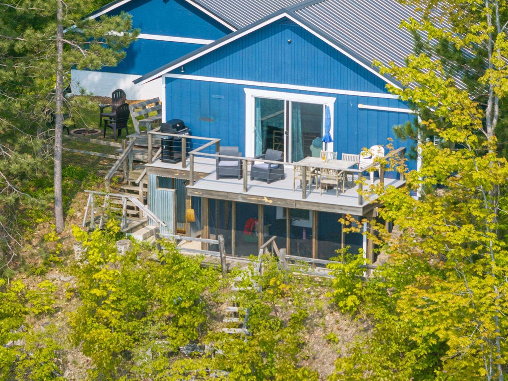 Discover your dream retreat at where tranquil lake life meets modern living. This recently updated home offers an impressive lake view, featuring 116 feet of pristine waterfront on the serene Starvation Lake. Enjoy evenings by the fire pit or relax on the spacious deck, perfect for soaking in the beautiful surroundings. Inside, the inviting living area boasts a natural gas fireplace, enhancing the cozy atmosphere. New kitchen features sleek solid surface countertops, designed for both functionality and style. The property is designed for leisure and entertainment with a finished basement area featuring a wet bar. Step outside to an outdoor shower, a perfect touch for refreshing after a day of fun on the water. A screened-in porch invites you to enjoy the fresh air while keeping the bugs at bay, making it a delightful spot for morning coffees or evening gatherings. This property is not just a home; it's a lifestyle, offering you the opportunity to embrace the beauty of nature while enjoying excellent amenities. Experience the perfect blend of comfort and outdoor adventure in this exceptional property on Starvation Lake.