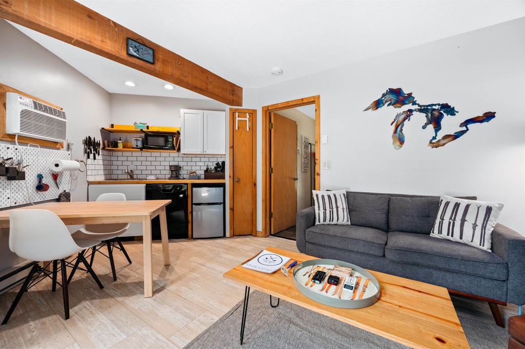 Modern one bedroom condo on the golf course, with a private patio and lovely trails for walks or snowshoeing. Walk to the ski lift and Ivan's bar, and the resort amenities. This updated unit provides cozy and thoughtful touches and comes completely turn key. Bring your clubs or skis and just your suitcase, and start enjoying all this lovely spot offers. Walk to the ski lift, golf course and clubhouse, with lovely park like views! Short term rentals are allowed. Unlike other developments in the resort, owners of Le Villa condominiums are able to self manage their units as rentals, or use the resort management program, with no restrictions or additional fees imposed by the association. This unit functions as a successful short term rental. Financial information is available upon request.