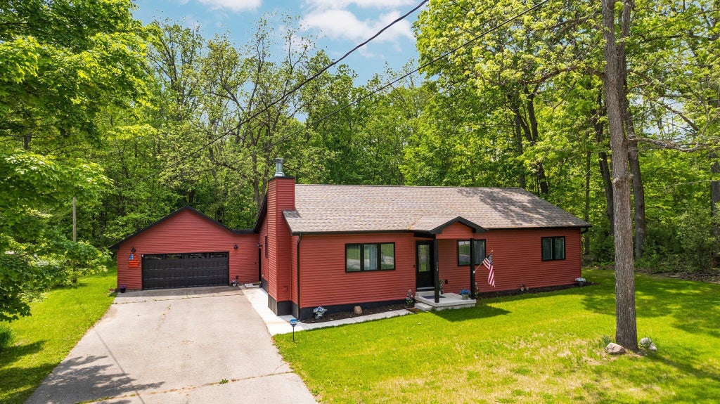 This like-new, custom-built 3-bedroom, 2.5-bath home is located in the Village of Fife Lake. Constructed in 2023 and gently lived in for just six months of the year, this quality-crafted home offers a beautiful open floor plan perfect for modern living. The island kitchen is a chef’s dream, featuring a pantry, stainless steel appliances, and ample counter space. Durable vinyl plank flooring flows throughout the kitchen, dining, and living areas. The living room is highlighted by a stunning floor-to-ceiling stone natural fireplace—an inviting centerpiece for cozy gatherings. The primary suite includes double sinks, a spacious closet, and a linen closet for extra storage. Two additional main-floor bedrooms are connected by a Jack and Jill bathroom, also with double sinks—perfect for guests or family. Additional features include main floor laundry, a convenient half bath, and a generous mudroom that connects to the attached garage. A concrete crawl space provides ideal storage, and a back door leads to a private patio area for relaxing or entertaining. Situated on four nicely wooded lots in the Village of Fife Lake, the property offers extra privacy and space, with a peaceful backyard ideal for enjoying the surrounding nature. Enjoy a short walk to downtown Fife Lake, where you’ll find a public beach, local restaurants, ice cream shop and so much more.