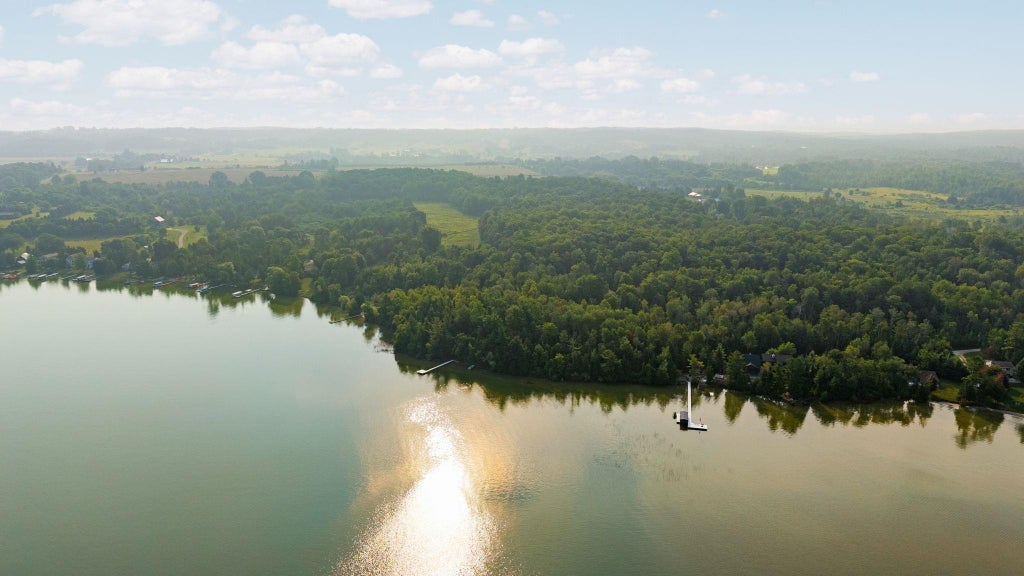 Experience the best of Leelanau living with this extraordinary 107-acre property featuring 500 feet of private frontage on the crystal-clear waters of Lake Leelanau. Rolling hills, ridge-line lake views, open meadows, hardwoods, evergreens, and farmland make this a truly one-of-a-kind offering - just a 15-minute drive from downtown Traverse City. The 4-bed, 2.5-bath main residence beautifully blends classic up north charm with modern updates, featuring vaulted wood ceilings, inlaid wood floors, and a stone fireplace. Both the home and property were thoughtfully renovated in 2022, offering a fresh, move-in-ready experience. A Generac generator provides added peace of mind for year-round living. Evenings here are especially magical, with stunning sunsets that paint the sky over the lake - easily enjoyed from multiple vantage points on the property. For additional living space, a separate 1-bed, 1-bath chalet offers updated interiors and a four-car garage underneath - ideal for guests, a private retreat, or potential rental use. Additional structures include a 30x50 pole building for storage and two waterfront cabins, perfect as bunkhouses or lakeside gear storage. With 3,700 feet of frontage along East Birch Point Road, a private dock, and a firepit for lakeside gatherings, this property offers a rare combination of beauty, space, and versatility in the heart of Leelanau County.