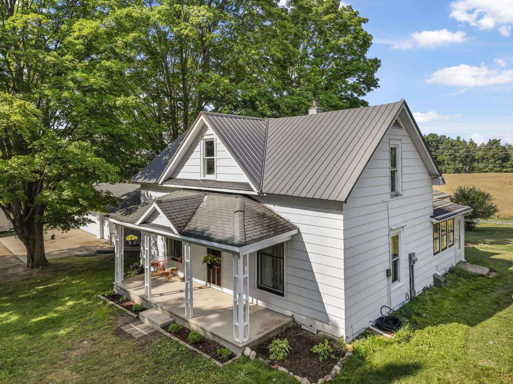 Discover the charm of country living with this inviting 2-bedroom, 1-bathroom farmhouse set on 40 beautiful rolling acres near the end of a dead-end road. Featuring a main floor master bedroom, main floor laundry, and a butler’s pantry, this home combines timeless character with practical convenience. Upstairs, you’ll find an additional room that can serve as a third bedroom, home office, or creative space. Enjoy peaceful mornings and summer evenings on the screened porch, overlooking the serene surroundings. Recent updates include a new well, metal roof, fresh paint, and some updated flooring, providing a comfortable blend of old and new. The land offers a mix of 5 plus acres of fenced pasture, over 9 acres of tillable ground, and gently rolling terrain, as well as a pond, ideal for a variety of uses. An established apple orchard adds seasonal beauty and bounty as well as food for wildlife, while the White Pine Trail crosses the southwest corner for easy access to biking, walking, or snowmobiling adventures. Outbuildings abound with a spacious 3-car detached garage, a 30x40 pole barn with a concrete floor perfect for equipment or workshop space, and a classic 2-story barn offering additional storage or livestock potential. Whether you dream of starting a hobby farm, cultivating crops, hunting or simply enjoying wide-open spaces, this property provides endless possibilities. Located in a peaceful rural setting yet just outside Cadillac, this is a rare opportunity to own a slice of Michigan countryside with both history and utility which would make an ideal setting for a hobby farmer or outdoor enthusiast.