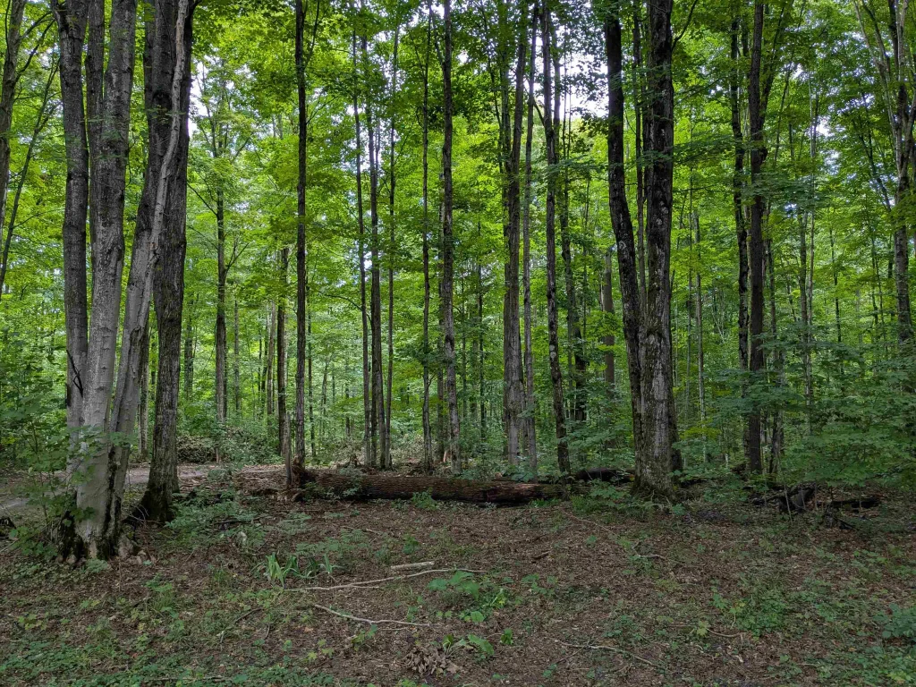A nice quiet and private 10 acres of hardwoods just off the beaten path, but close to everything the area has to offer. The property has an existing 5 inch water well, a manufactured home / house trailer and a well built storage shed with a concrete floor. The property has been well maintained and is used as an off the grid summer get-away. There's an existing driveway and some trails throughout. It is located less than a 1/2 mile from the popular Grandview Golf Course. Traverse City and Turtle Creek Casino are just a short drive away. Close to snowmobile and ORV trails, many lakes and streams, and everything that makes the area a popular year round get-away. The property, existing structures, and contents are being sold "as-is". A copy of water well permit / well info is available in the online documents. Electricity appears to be available approx. 1/4 mile away at Hagni Rd. House trailer and water well pump are currently powered by the generator in the pictures which is also included with the sale of the property.