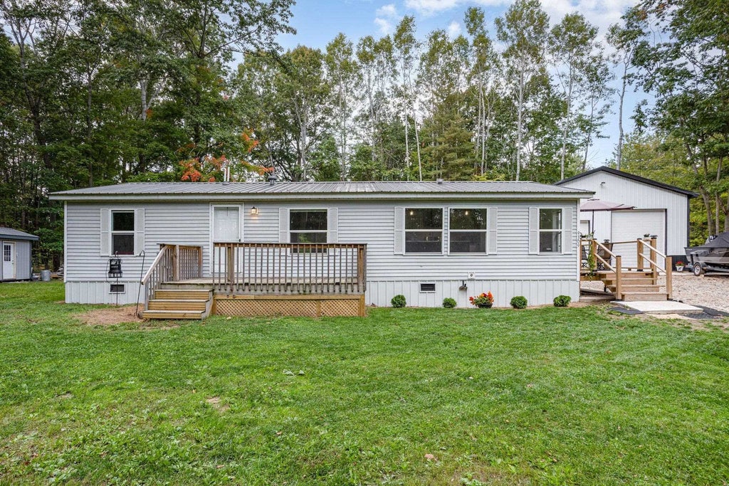 Just a few blocks off the lake with deeded lake access, you'll find this GEM! Located in the Lakewood Estates area just off Duck Lake is this 3 Bedroom 2 Bath home. You get a secluded feel with this wooded 3-lot property that totals around 1.3 acres. Enjoy plenty of wildlife all around, or head down to the lake for recreation, such as boating, kayaking, and fishing. Home has a brand-new Pole barn with concrete floors and power run, a perfect place for all the toys or a future shop. Some of the lot is fenced in for convenience and would be great for pets/animals. Inside, you'll see updates throughout the whole home. The kitchen, baths, walls, and floors have all been touched. An open split layout is a floor plan with the Primary Suite including a private bath and closet on one side, and the remaining two bedrooms and bath on the other. This home has many of the check marks checked, well maintained, outdoor space, pole barn, metal roof, just come on out to look at all it has to offer.